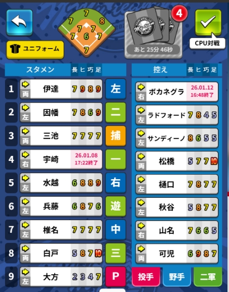 ゲーム 匿名さん(0aa00365_572c19) |2026.1.6(11:55) ダイナマイト野球のスタメンどう思う? スタメンの改善点をお願いします 通報する お気に入りに入れる このユーザーをブロック