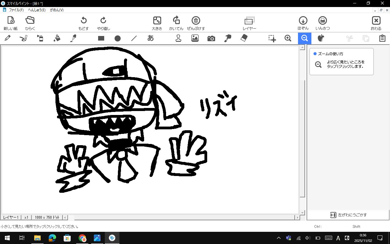 リスのすに点を付けて、いを適当に付けたら、リズイくんの完成です!(((ごり押し