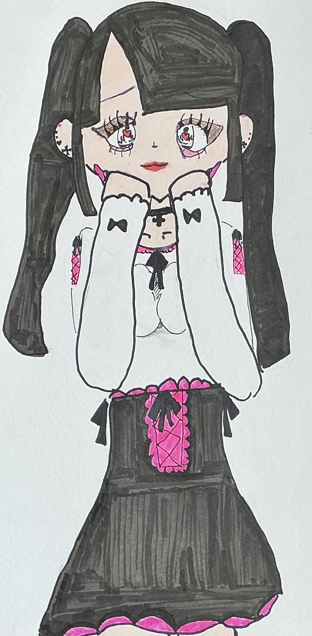 かわいい〜!!!涙袋とまつ毛ばちばちなのが地雷系っぽさマシマシで可愛いですね!僕はまつ毛あまり描けないので尊敬します!