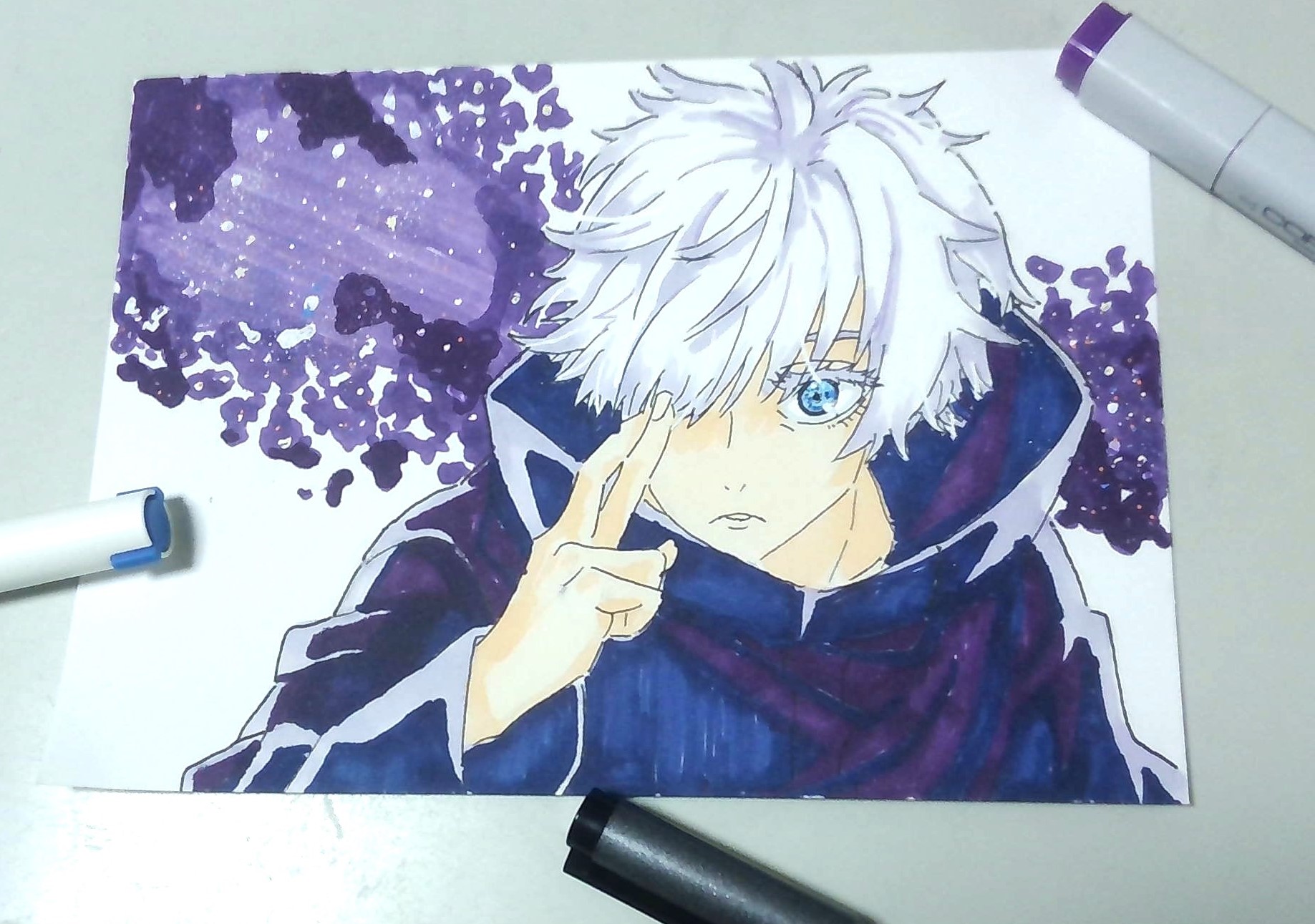 イラスト・絵 月影だし巻き卵(3374aeb8_a906fb) |2026.1.25(11:07) コピックで五条悟描いたぜ なんかリクエストとかあったら言ってね! できるだけ描くから!(アナログで下手だけど) 通報する お気に入りに入れる このユーザーをブロック
