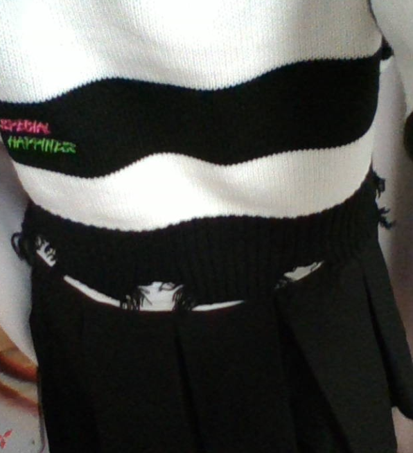 正直、白と黒しか色がないのがダサい。あとそれならスカートじゃなくて青系のズボンのほうがいいと思う。まあそれか色があるスカートとかね。