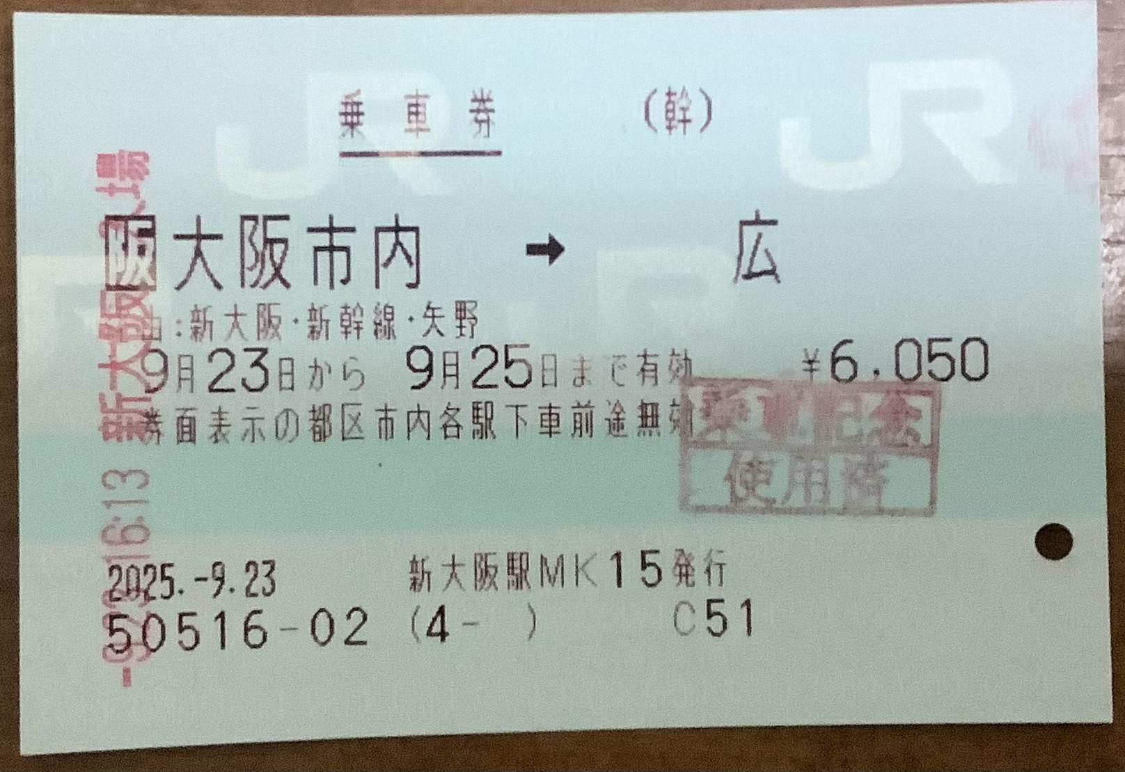 画像は…関西から私の最寄り(広)までの切符ですね。(ちなみに家に切符類が43枚たまってます)