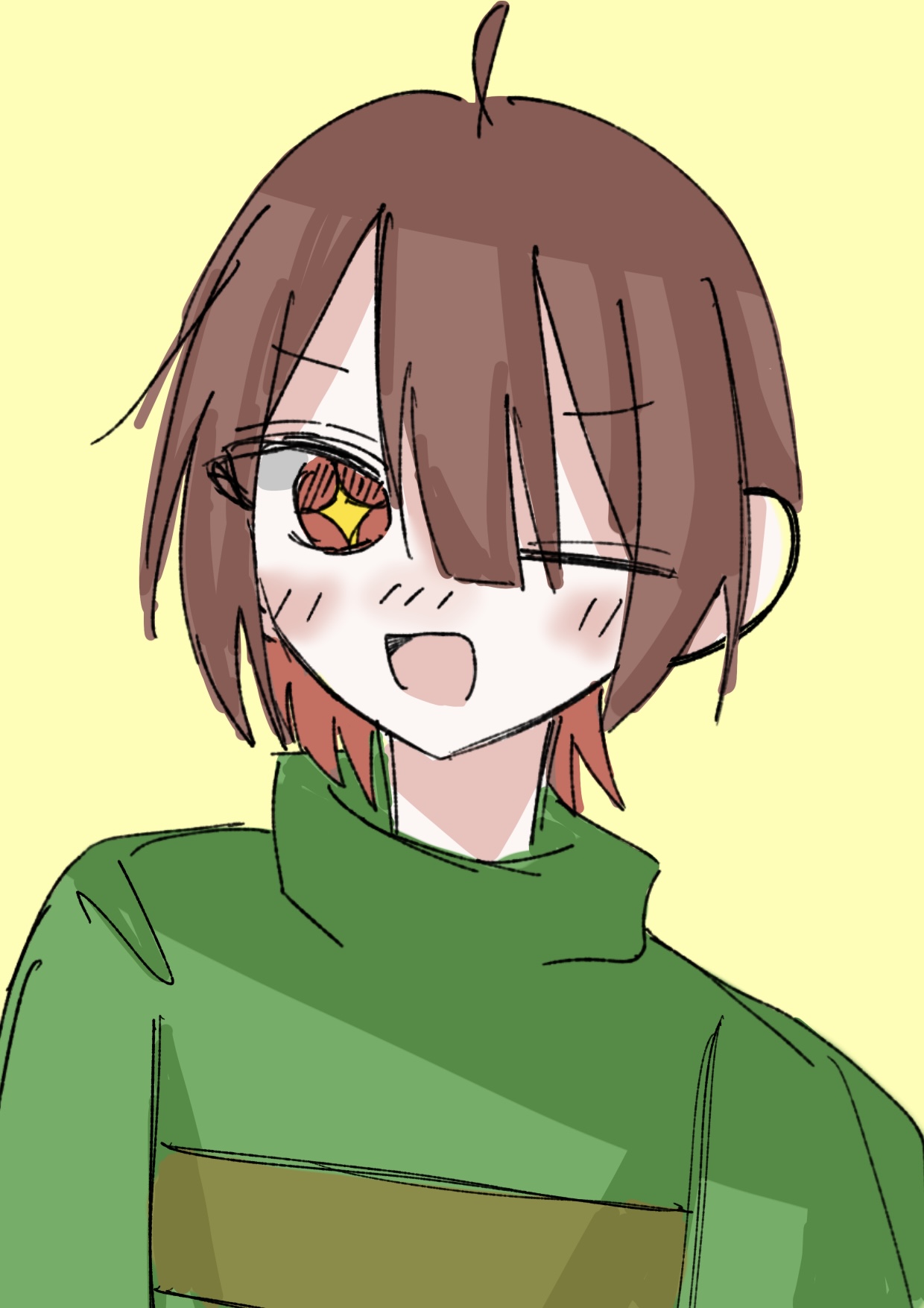 ざっとした色塗りも味があっていいし、表情も面白みがあって良き!髪のハイライトが入ってるのも、影がつけられてるのもすごい!俺はこのイラスト好きだぞ!