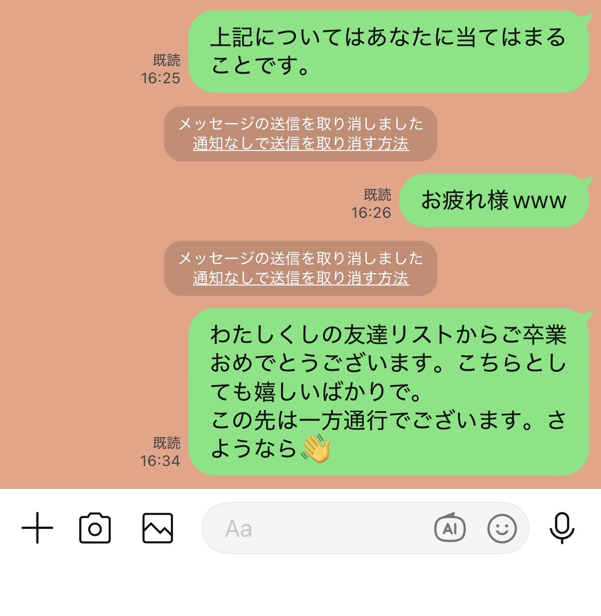 なんか、一昨日クラスLINEでトラブルみたいなことが起きて、そこに私も参戦しててそれの原因の人が嫌いになったんですね。(また)そして今日の夕方ごろにそいつにスタ連&メッセージを送ったんですけど、どうですかね。